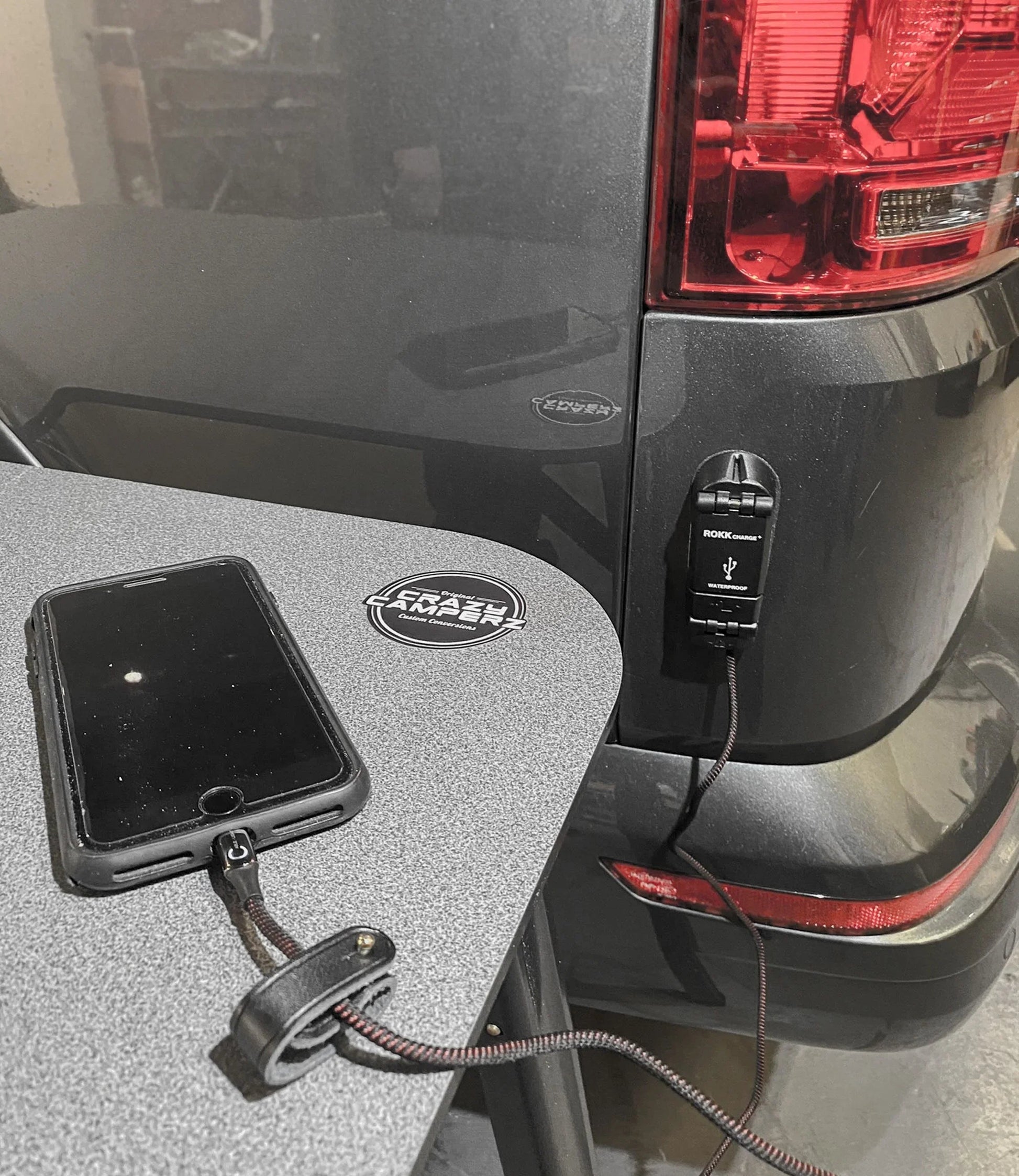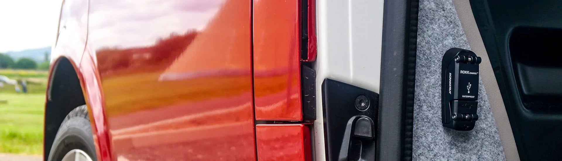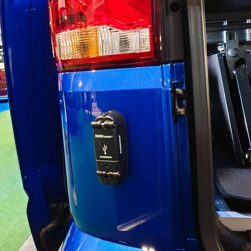 ROKK Charge+ waterproof dual USB socket for marine and outdoor use, offering rapid charging in a compact, weatherproof design.