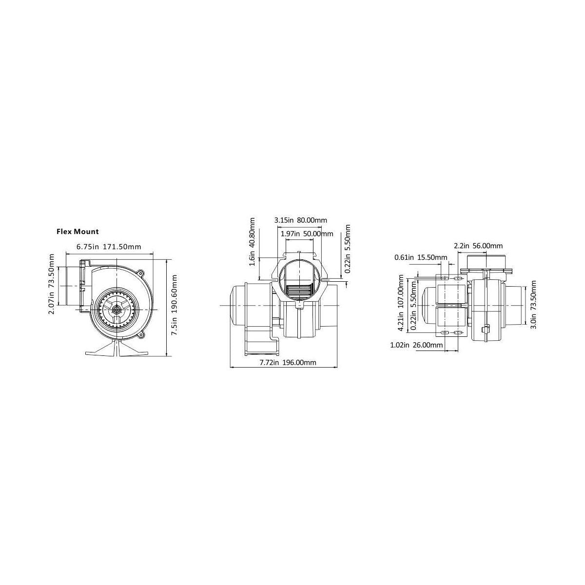 Suitable for bilge and engine‑compartment ventilation on launches, RIBs and small yachts; also ideal for other marine inline blower and 12V bilge fan applications.