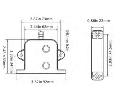 - Activates at 41 mm (1.6 in); deactivates at 9.5 mm (0.37 in)