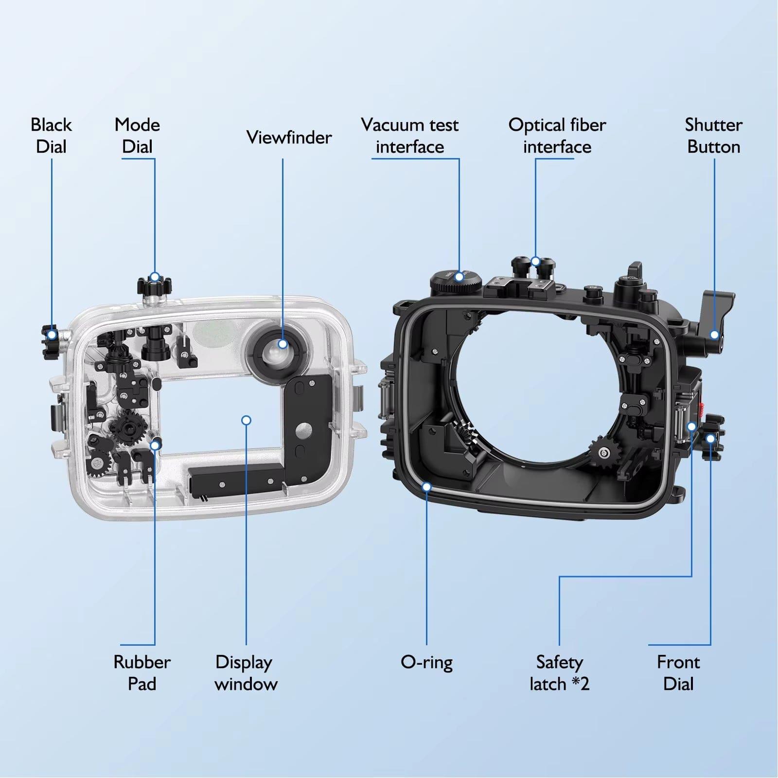 - Superior Waterproofing: Rated for depths up to 60 meters (195 feet), this housing ensures your Sony A6700 is fully protected for diving, snorkeling, and underwater exploration.