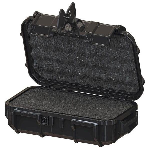 Waterproof, meets or exceeds IP67 Built for continuous submersion up to 3 Meters Made of high impact resistant polycarbonate Carabiner loop 2 inch strap attachment Rust proof hinges Keyed plastic safety locking latch Includes Accuform Cubed foam base and convolute lid foam Automatic pressure equalization system Buoyancy: 3 lb Weight Capacity: 10 lb