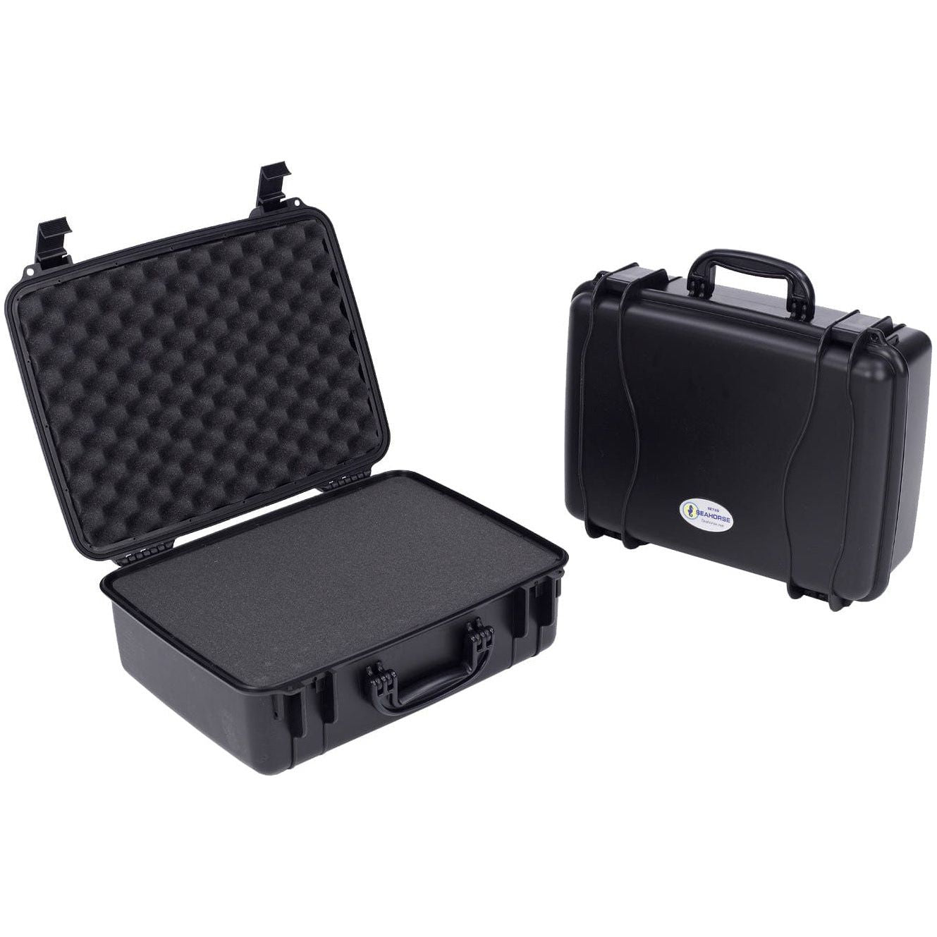 Watertight, Airtight, Rustproof, Dustproof and Crush Resistant. Automatic pressure purge system. O-Ring seal. Moulded-in padlock holes (fits standard size Masterlocks). Available with or without multilayer protective cubed matrix Accuform Foam. Latches are available with keyed chrome metal locks or plastic non-corrosive locks. Chemical and UV resistant. Non-Magnetic without optional metal locks. This case will fit in overhead bin of most major airlines. All cases come with Seahorse's Unconditional Lifetime Guarantee. Inside Dimension L 46.48 cm ; W 33.52 cm ; H 15.74 cm Outside Dimension L 51.05 cm ; W 39.44 cm ; H 18.64 cm
