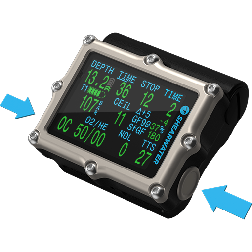 Air integration is standard with up to four Shearwater transmitters to customize a solution from open circuit to rebreather and bailout gas pressure monitoring.