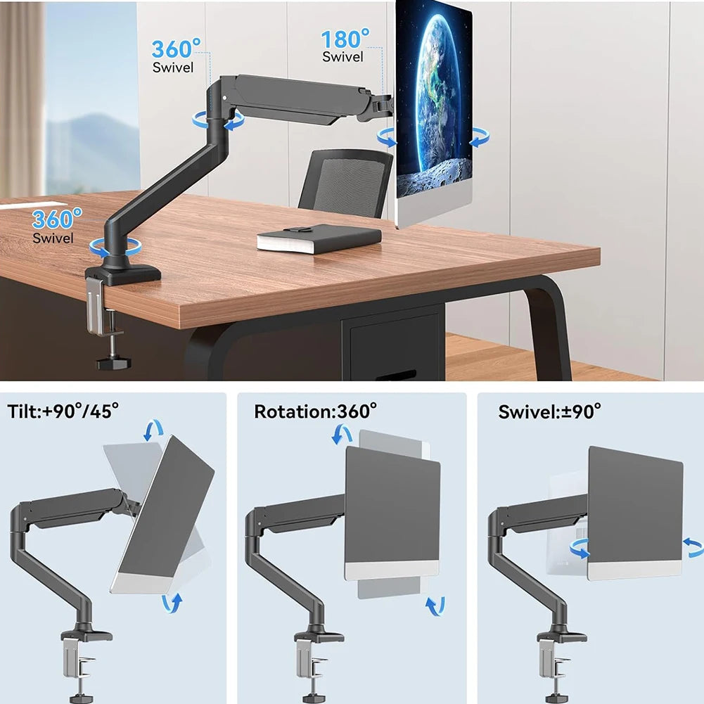 Single Monitor Stand Swivel Monitor Bracket Free Adjustable Expandable Display Bracket Holds 4.9 To 19.8lbs for Home Office