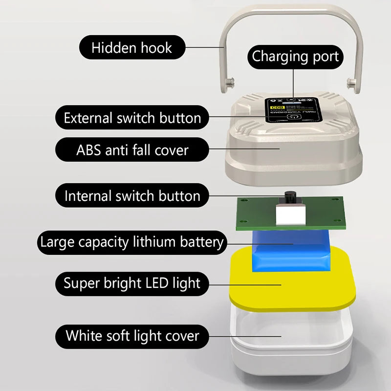 Solar Chargin Tent Strong Light With Magnet Zoom Portable Torch Camping Lantern Work Maintenance Lighting LED