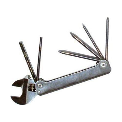 Manufactured from rust free marine grade 316 stainless steel. This versatile tool with adjustable spanner, screwdrivers & Allen keys is perfect for most diving applications. Folds away neat and tidily when not required. Includes 4 & 5mm Allen Keys, 3mm-1/8” flat, 5mm-3/16” flat & Phillips type screw drivers , pointed end tool and adjustable spanner with an opening up to 20mm-3/4".