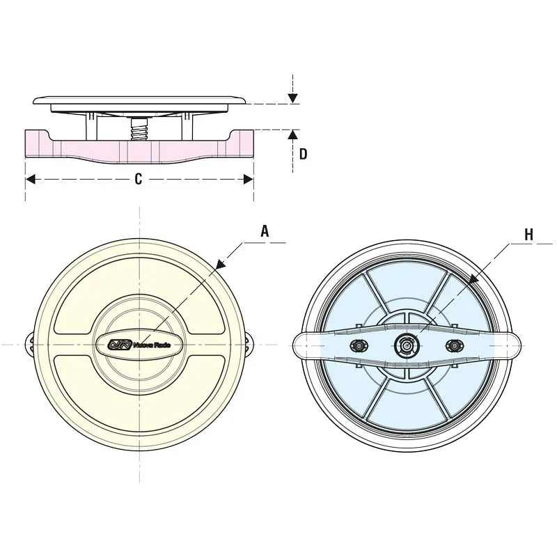 Internal opening 200mm (7.9in). Designed for mounting to flat surfaces on decks or bulkheads.