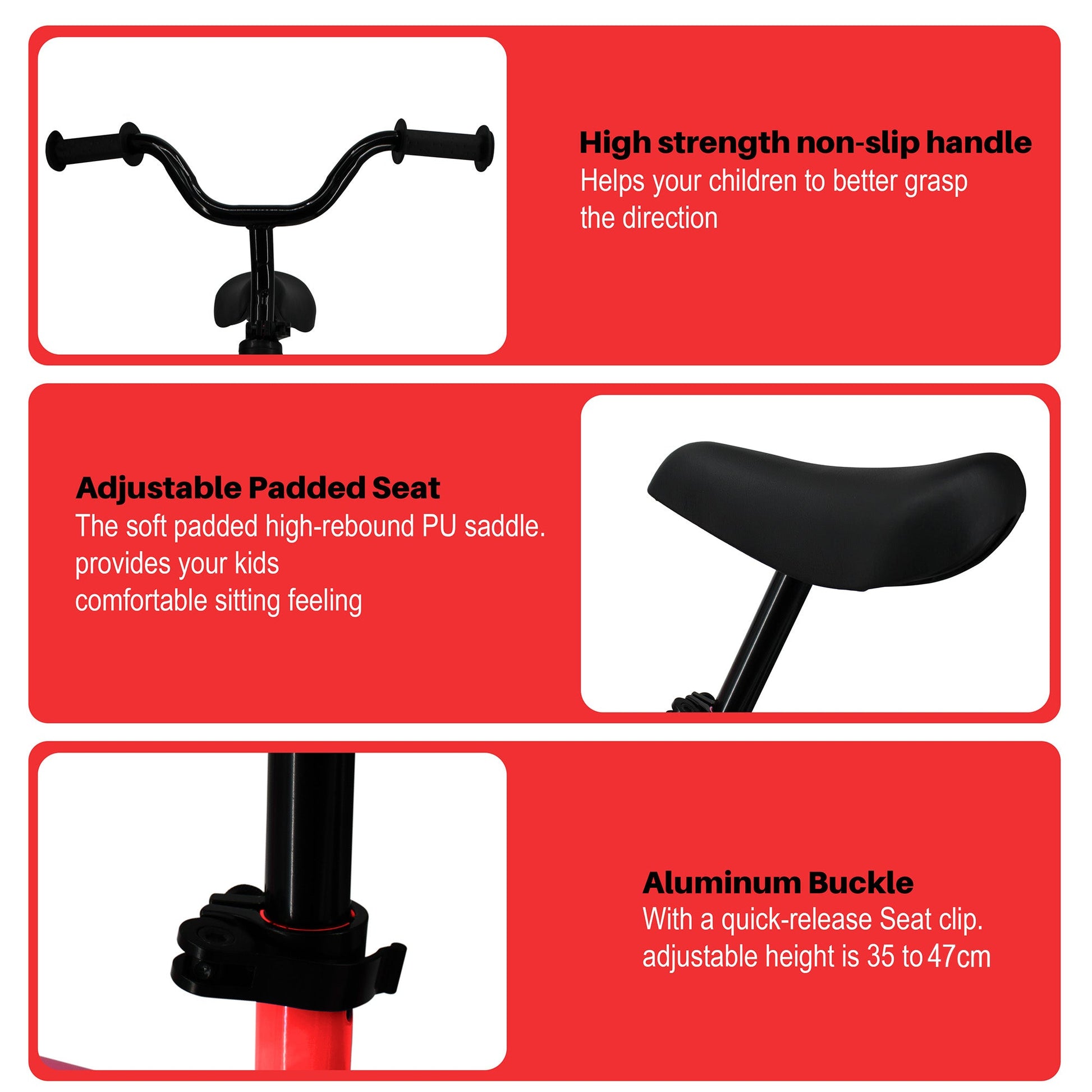 - First Bike to Kids - Different from regular bikes, there are no pedals and training wheels. It helps your child develop the necessary balance and coordination skills, enhance physical flexibility and skill, and develop a positive, confident, and determined character. It will be a good choice as a gift for kids.