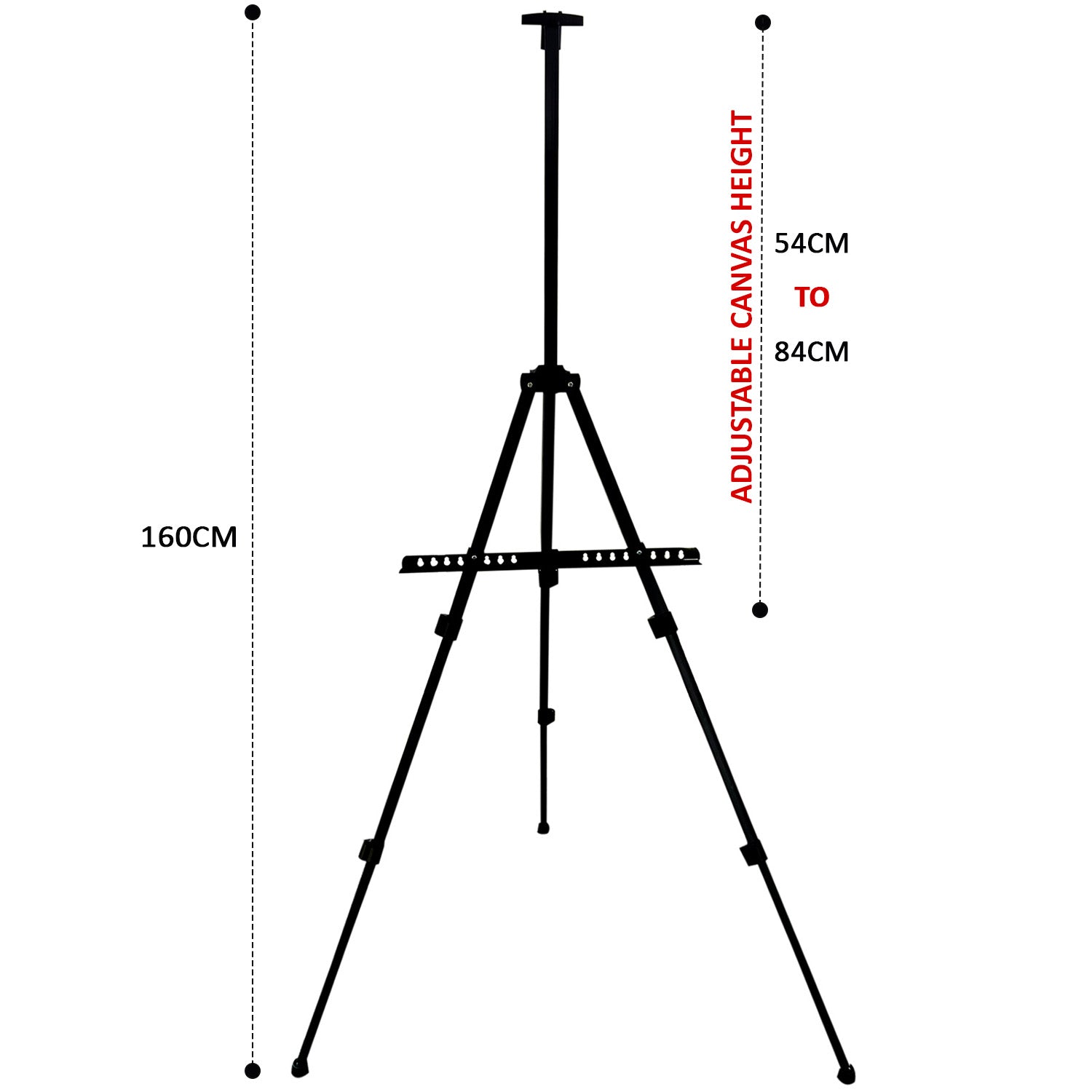 This high-quality Easel is an artist’s essential accessory! Can be used with almost all painting techniques, it is a sturdy and convenient tripod stand that puts your art piece at the perfect height for painting or display. The artist's easel is constructed from durable metal and is easy to set up and put away. The canvas carrier can be adjusted for an optimal working height and is fitted with a canvas clamp for extra canvas stability. The items are Easy to fold away and store when not in use.