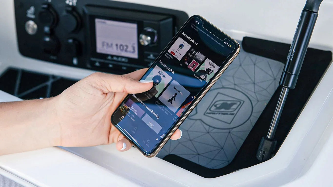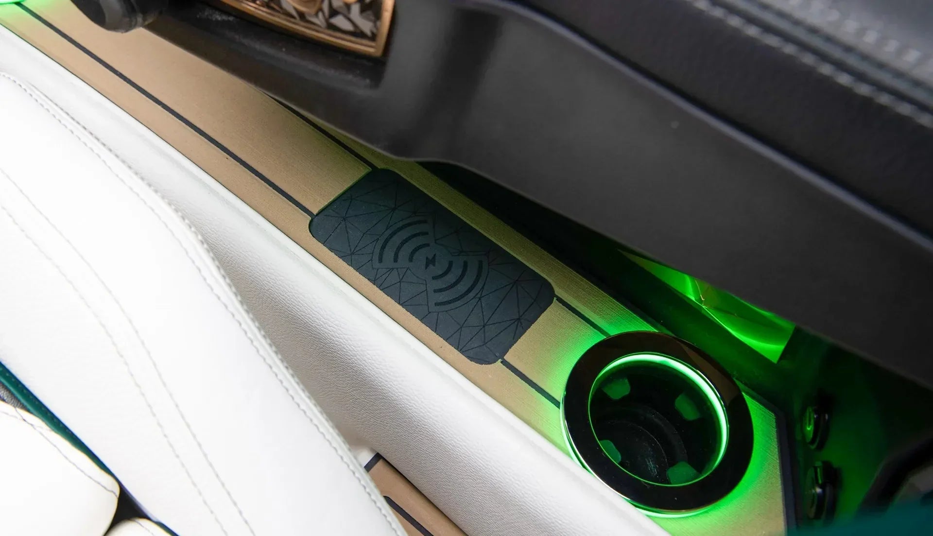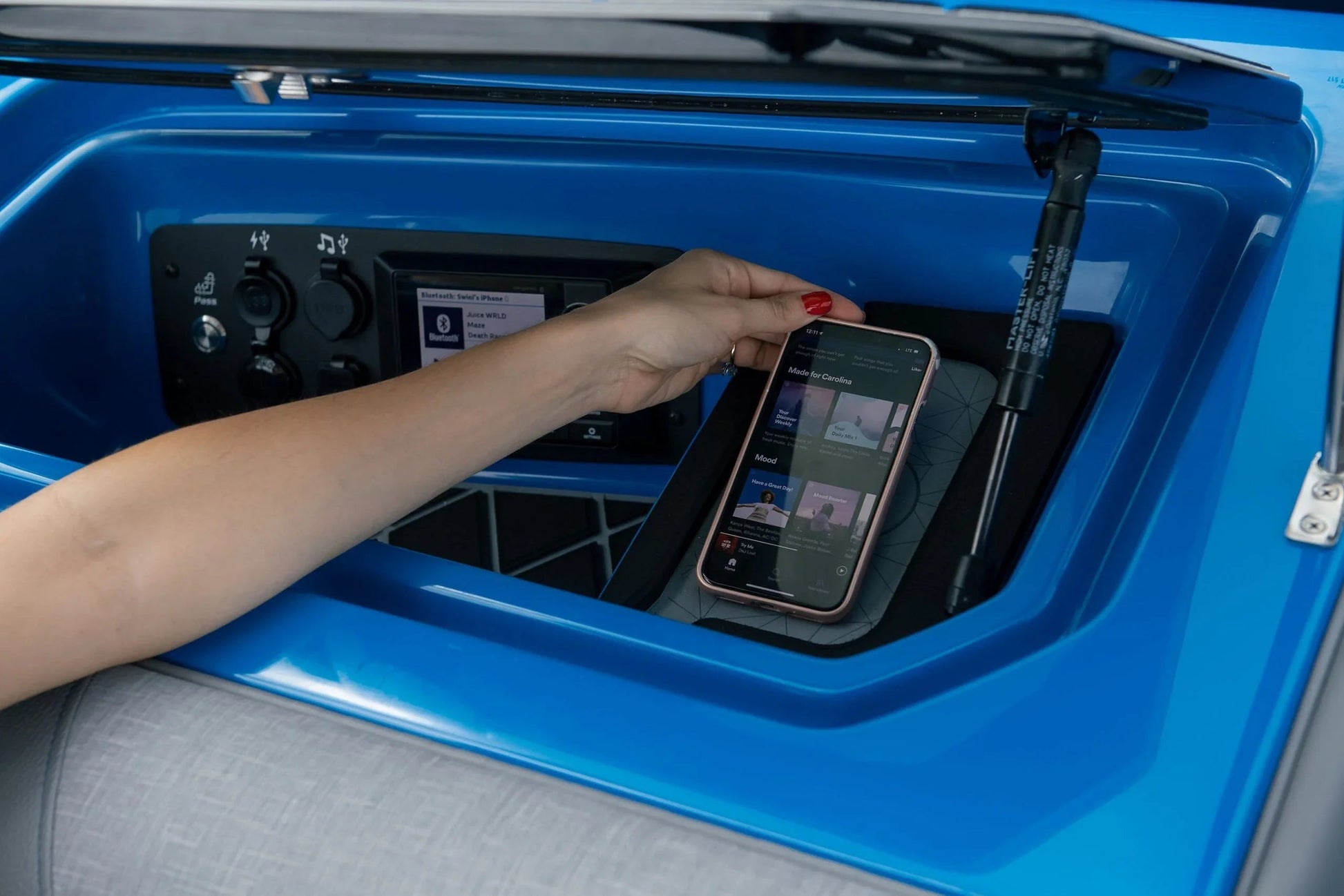 Engineered to bond underneath & wirelessly charge through all non-metallic materials; GRP, fabric, leather, wood, carbon fiber, and all leading marine traction products, e.g SeaDek and MarineMat. The result is wireless phone charging capabilities with your finished aesthetic.