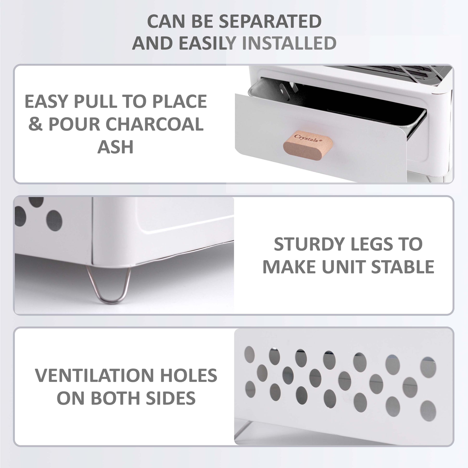 This is a high-quality durable steel black colour foldable feet, portable and free-standing tabletop BBQ barbecue charcoal grill. This is made of steel with an enamel black coating on it for its durability and is finished with a unique design. This requires no screws or tools to build up. The cooking grill is made of chrome which makes it easy to clean. This is a perfect item for camping and picnicking out, and it can be your fabulous companion with friends and family.