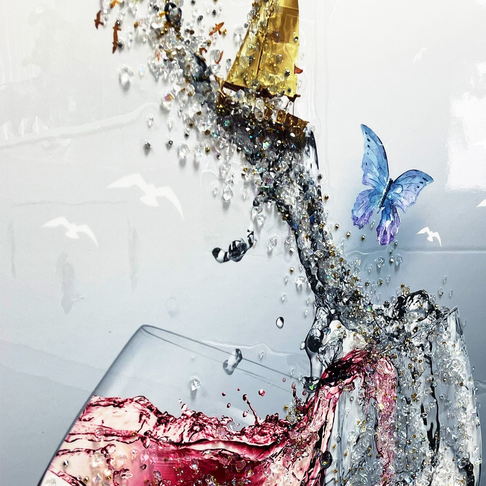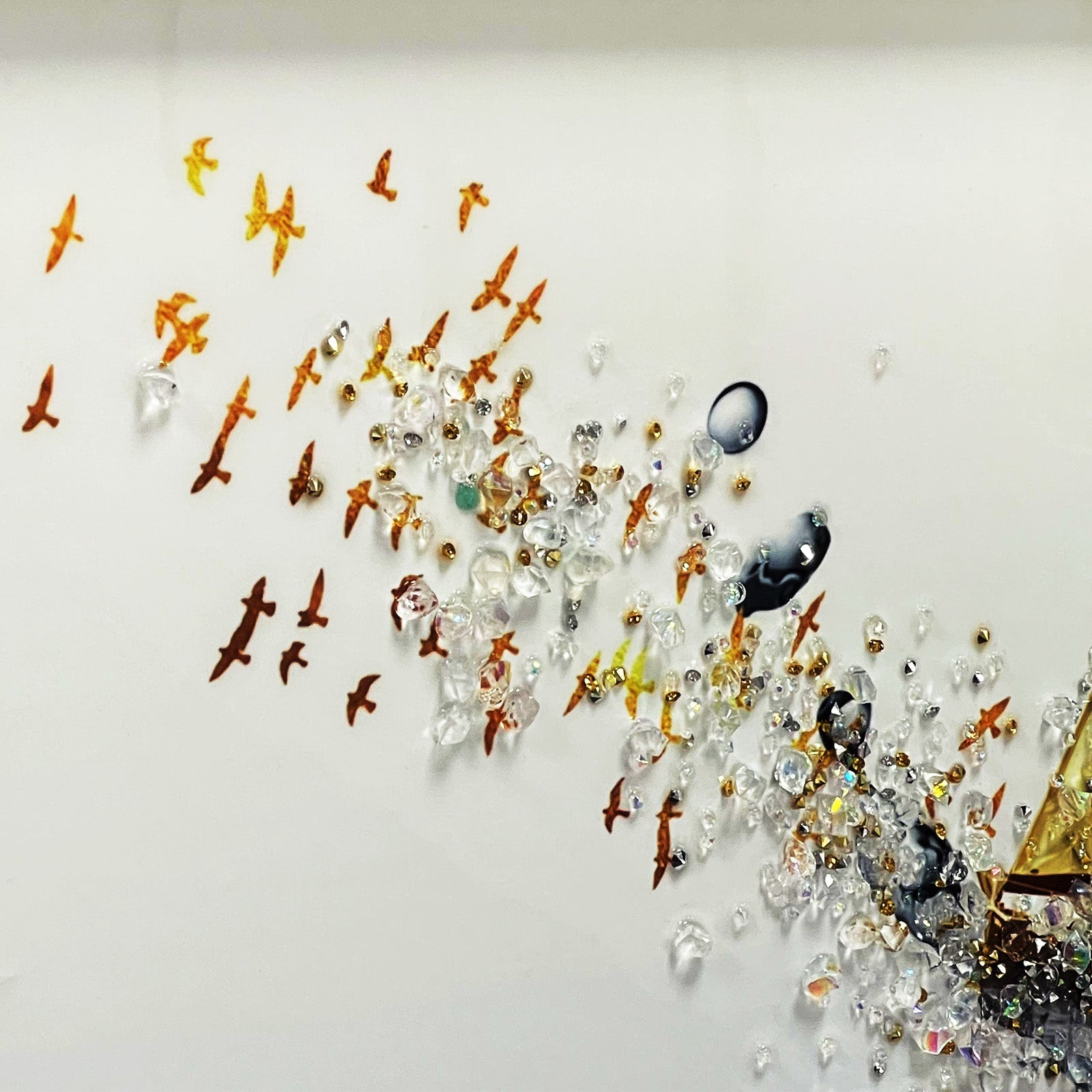 - Machine Printing on paper with additional crystals on it.