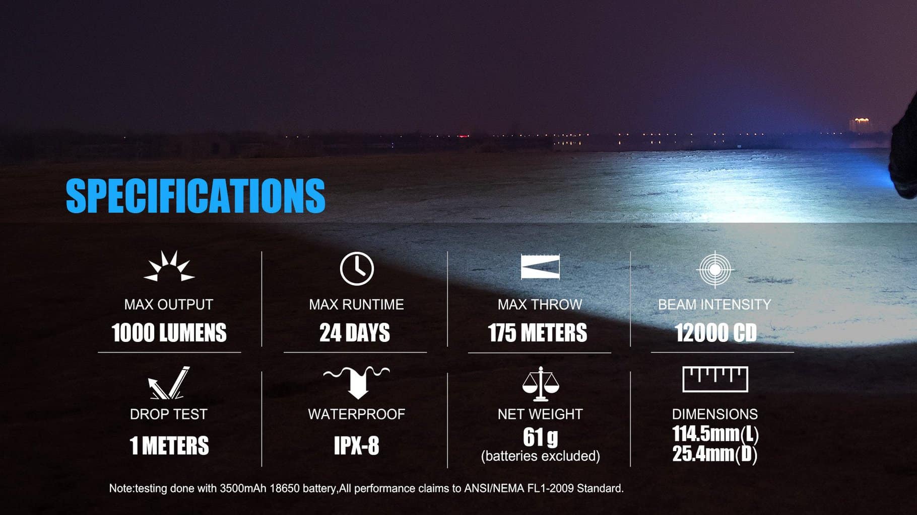 - Long Run Time: This light gives out 1000 lumens max for 105 minutes, max runtime 560 hours under 5 Lumens low mode,boasts a throw distance up to 175 meters with one 18650 battery (included). It delivers long life for every day use like dog walking on dark roads and trails.