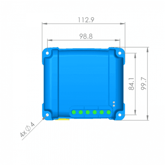 - Mechanical: Dimensions 100 x 113 x 38 mm (3.94 x 4.45 x 1.50 in); mounting dimensions 99 x 84 mm; weight 500 g (1.10 lb); accepts wires up to 6 mm² (≈10 AWG).