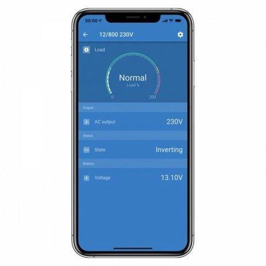- Efficiency and consumption: nominal inverter efficiency 87%; zero-load power 4.2 W; default zero-load power in ECO mode 0.8 W (adjustable via the VictronConnect app).