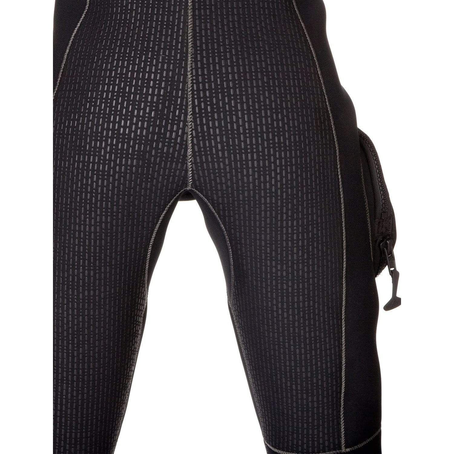 Microcell CR Neoprene that is used to make the D10 ISS provides excellent thermal qualities as well as durability compared to other neoprene qualities. The neoprene itself is lined with a Toughtex lining to help protect the suit from abrasion damage. The suit is cut to provide a comfortable fit without creating excessive amounts of material that can increase drag and weight.