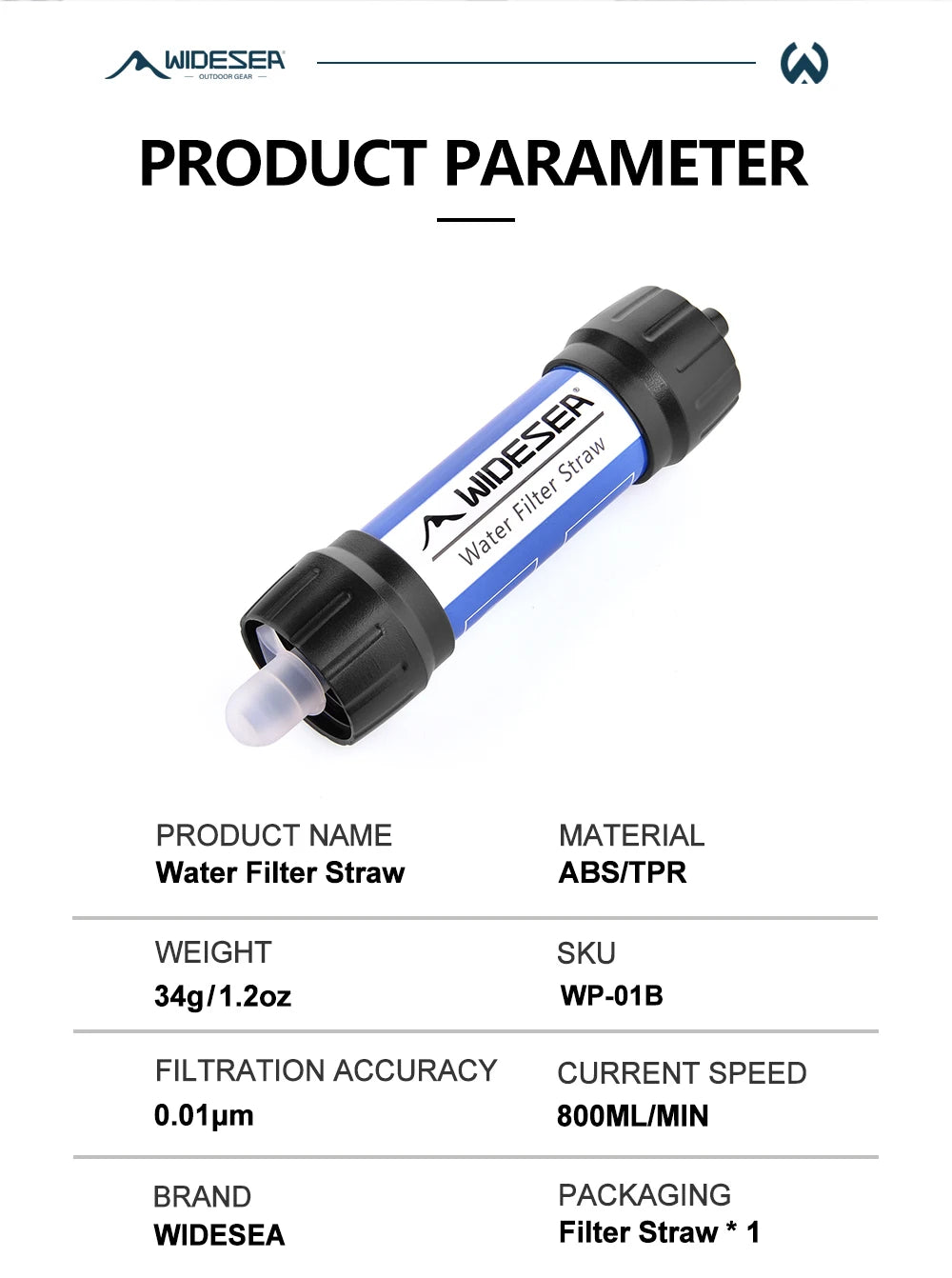 Widesea Camping Outdoor Water Purifier 0.01Micron Filtration Portable Reusable Straw Type Use Of Highqualitymedical Hollow Fiber