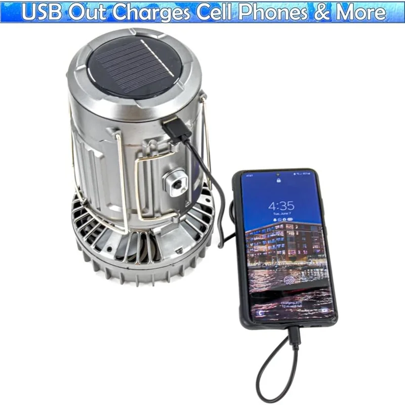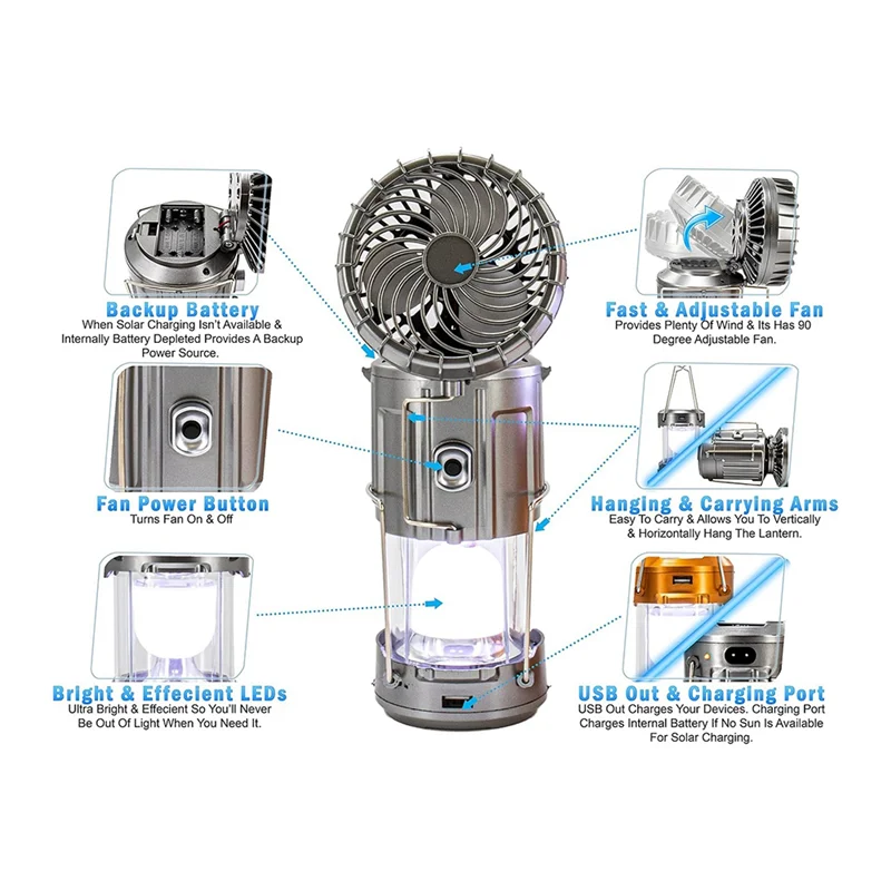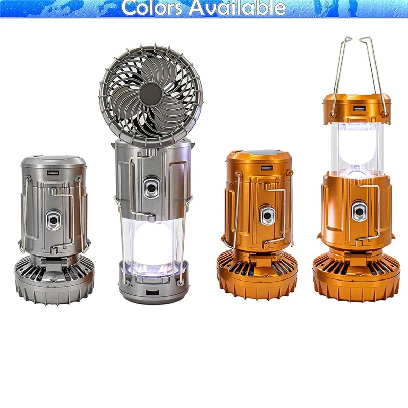 XSXS-6 In 1 Camping Fan 2 In 1 Hanging Fan With Led Lantern Solar Powered Fan Portable Rechargeable Gold